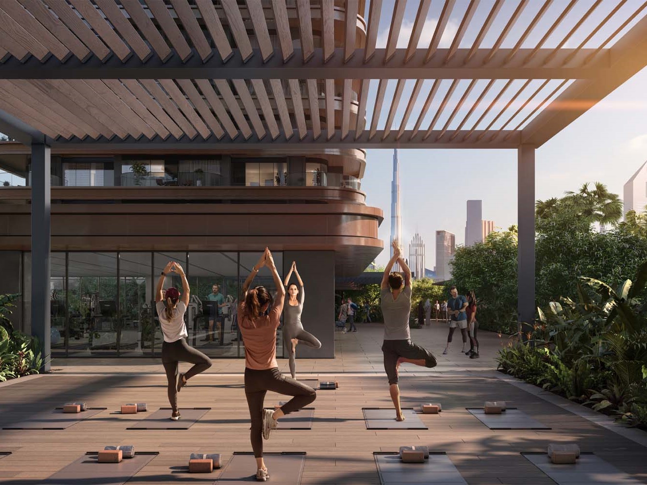 - Resort-style amenities including shared pool, gym, and spa