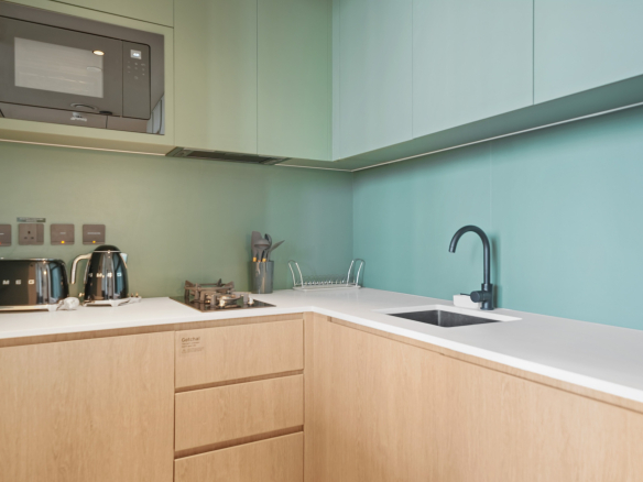 - Amenities include a shared pool, gym, sauna, meetings rooms, kitchen space, working spaces and children’s play area